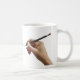 Conceptual image of a hand writing about the importance of a nutritional coffee.