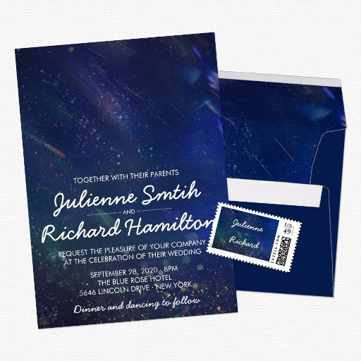 You can apply the design of your Written In The Stars Galaxy Wedding Invitation to other items for a party such as stickers. The same goes for all of our digital products - any digital product/ design you purchase can also be used on any Zazzle product.