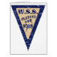 W.S.S., War Savings Stamps poster from the 1918. W.S.S. were the war bonds of the first world war. An inverted triangle with the words W.S.S. Pledged for 1918 in the center. The design has been lightly distressed.