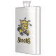 The product is a good size and came exactly as it was pictured. The lid is not attached to the flask, which could be dangerous on drunken nights... The print came out surprisingly well and looks very sharp. Would definitely recommend.