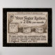 Vintage historical World War One poster, from the US Government, depicting sugar rationing guidelines for American citizens. Poster reads "We must confine our consumption of Sugar to not more than 2 lbs per person per month in order to provide a restricted ration to England, France and Italy."
