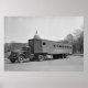 Description with the photo: "New oversize trailer for war workers. Here's an answer to the problem of transporting defense workers to outlying industrial plants: It's the new oversize bus trailer made almost entirely of non-critical materials which held its Washington premier April 13. Hauled by an ordinary one-and-a-half-ton truck tractor, it holds 141 persons, and was designed and built by the Office of Defense Transportation and War Production Board (WPB) officials with the cooperation of private companies. Weight of the trailer is 12,000 pounds as compared with 17,000 pounds for a standard type 40-passenger city bus. The complete unit is fifty-five feet long." Old World War Two photo taken in 1942 by photographer Albert Freeman. FSA / OWI Photograph Collection.
