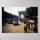 Crowds of French patriots line the Champs Elysees to view Allied tanks and half tracks pass through the Arc du Triomphe, after Paris was liberated on August 25, 1944. Photo shows Free French tanks and half tracks of General Leclerc's 2nd Armored Division. Jack Downey, photographer.