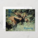 Wyoming bull moose postcard. Bull Moose emerging from the trees.