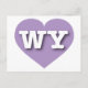 This postcard features a cool lavender heart containing the bold, white, upper case letters WY, the official abbreviation for Wyoming, the cowboy state. The reverse side of the card is blank, awaiting your personalized text or handwritten sentiments.