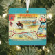 It's a vintage, retro postcard map of Wyoming repurposed as an ornament.