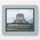 A digital painting of the Devils Tower and a herd of bison grazing near a river, with trees scattered at the base of the geological tower and rolling hills in the background. This is not a real landscape scene in Wyoming. This painting was made based on two of my photographs. In white lettering, across the center of the painting is, "Wyoming". At the top corners is the state motto, "Equality State", and the statehood year, "1890". The painting has a dark blue border. Image Copyright ©2023 Kimberly J Tilley.