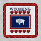 A graphic Wyoming Flag design with hearts and the text Wyoming on a patch.