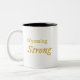 Prominently displayed on the front of the mug is the bold, stylish typography spelling out "Wyoming Strong" in striking golden letters. The use of gold accents adds a touch of luxury and prestige, elevating the mug's visual appeal and making a powerful statement. The choice of font reflects modern design sensibilities, with sleek sans-serif characters that convey a sense of strength and resilience.