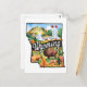 Wyoming USA State Shaped Vintage Watercolor Postcard