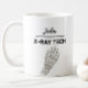 A mug featuring the words X-RAY TECH with a loose illustrative skeleton view of a hand. Designed as a personalized name gift, this makes a thoughtful thank-you or appreciation gift for a radiographer or X-ray technologist who takes pride in the profession.