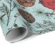 Introducing our exquisite roll of colorful wrapping paper, adorned with the timeless artistry of Nathalie Portet. This roll features an XL print version of this holiday design, a captivating ink drawing that captures the essence of winter's enchantment. Portraying a delicate balance between intricate detail and graceful simplicity, the illustrations showcase perched red cardinal birds, pinecones, pine needles, and winter berries on an elegant Duck Egg Blue background.