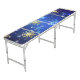 Not that I've had experience to buy that many beer pong or ping pong tables in my life, but I know a good quality product when I see it! This beer pong table is sturdy and solid and still lightweight enough to be portable. It folds and unfolds smoothly for easy storage or setup. From order to arrival here, the time was half of what was estimated, and that was during the holiday season. And -- most importantly -- the recipient LOVED it! I would definitely purchase this product again or other products by the maker Hampton Technologies , should an occasion to do so arise. The printing is beautiful! The blues and reds are deep and rich and the white "chalk look" is clean and crisp,. The photo (taken in low light) doesn't really do it justice. We know it's printed, but take a step back, and it really does look like chalk on a blackboard. To get the blue background like we did (instead of the traditional green chalkboard background), use background color #26306A. :)