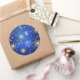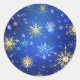 XMAS Blue Background with Golden Snowflakes Classic Round Sticker