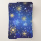 Blue Christmas background with gold and white jewelry snowflakes. Golden snowflakes. XMAS.
