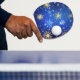 XMAS Blue Background with Golden Snowflakes Ping Pong Paddle