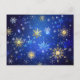 XMAS Blue Background with Golden Snowflakes Postcard