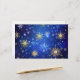 Blue Christmas background with gold and white jewelry snowflakes. Golden snowflakes. XMAS.