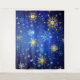 XMAS Blue Background with Golden Snowflakes Tapestry