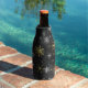 Xmas Golden Snowflakes on Black Background Bottle Cooler