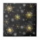 Xmas Golden Snowflakes on Black Background Ceramic Tile