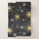 Black Christmas background with gold and black jewelry snowflakes. Golden snowflakes. Xmas.