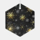 Xmas Golden Snowflakes on Black Background Label Glass Ornament