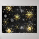 Xmas Golden Snowflakes on Black Background Poster