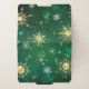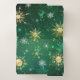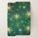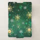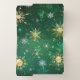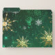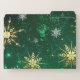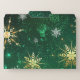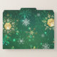 Green Christmas background with gold and green jewelry snowflakes. Golden snowflakes. Xmas.