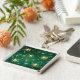 Green Christmas background with gold and green jewelry snowflakes. Golden snowflakes. Xmas.