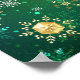 Green Christmas background with gold and green jewelry snowflakes. Golden snowflakes. Xmas.