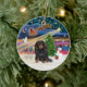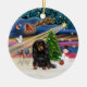 Xmas Magic - Long Haired Dachshund (Black-Tan) Ceramic Ornament