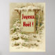 Vintage Hungarian graphic art from 1901 is featured on this poster. a yard sign and some pine trees covered in snow. Edits and enhancements by Alma Wad. The French greeting "Joyeux Noel!" is included now.