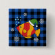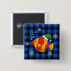 Xmas Tropical Fish Cartoon on Blue Buffalo Pattern Button