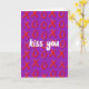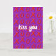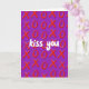 The front design shows a deep purple background filled with repeating “X” and “O” shapes in fiery orange-red, like a flirty back-and-forth across the whole card 🥰. Each letter looks brushy and textured, giving the pattern a lively, touched-by-hand feel without looking messy. A thin blue‑magenta glow traces the edges of the symbols, adding a soft neon depth that makes them stand out from the purple field ❤️. In the center, the phrase “kiss you” sits as the main focus, set in smooth white lettering that contrasts sharply with the textured pattern behind it. The placement feels like a private note dropped right into the middle of a game of hugs and kisses, with the surrounding Xs and Os seeming to lean inward. The repeating pattern stays evenly spaced around the message, creating a steady rhythm while the center text holds your eye. The white words sit cleanly against the darkest purple, framed by orange-red Xs and Os with that blue‑magenta outline glowing at their edges.