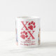 The coffee mug features a modern blush pink and burgundy red color scheme, with a paw prints and hearts design that's both groovy and eye-catching. And for an extra special touch, you can even add a photo of your pet or kids to make it truly personalized.