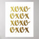 xoxo gold typography poster print features modern hand written typography in a faux gold foil texture. This print is suitable in a kids room or the living room. Also comes in different colours.