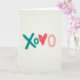 This greeting card features the simple message “XOXO” centered on a soft off-white background. The first “X” and the next “O” are painted in deep teal, with slightly uneven edges that make them feel warm and human. In the middle, a bright red heart takes the place of the next character, with visible brush marks that give it a lively, caring look ❤️. The final “O” is a gentle pastel pink, adding a softer finish to the color flow. The letters look like casual painted lettering rather than a formal font, and they sit right in the middle with plenty of open space around them. With no extra objects or scenery, the focus stays on the message and the feeling behind it. It’s a meaningful card to give because it says “hugs and kisses” in a simple way that fits romance or close friendship 🥰. Hope it helps you share Valentine’s Day sentiments with someone you care about.