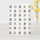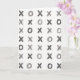 The pattern is arranged in neat rows and columns, creating a simple, balanced feel. Each X and O is slightly different in shape and tone, adding personality and an artistic touch. There is no text, but the playful tic-tac-toe style gives the card a subtle, romantic feeling perfect for Valentine’s