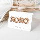 Modern whimsical design features "XOXO" spelled out in rose gold balloons, with your name or choice of personalization beneath in black lettering. Add a pre-printed inside message if desired.