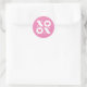 This circle sticker is perfect for Valentine's day. It features bold white type with hearts in the center of the o's on a bubblegum pink background. It makes a perfect seal for goody bags and cards.