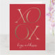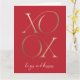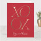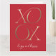This Valentine's Day folded greeting card features a gold xoxo hugs and kisses graphic on the front and says "Sending Valentine's Day love" on the inside. This classic card is suitable for a variety of recipients.