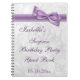 Elegant Surprise Birthday Party guest book for any age. XXth Surprise Birthday Party! Beautiful white damask pattern background with a pretty, stylish purple / lilac / lavender bow and ribbon image. These glamorous, classy guest books are perfect for women and teenage girls and are decorated / printed on the front side only. Teenagers and adults alike will love this chic modern surprise party guest book. Can be used for any age:- 17th 18th 19th 20th 21st 30th 40th forty 50th fifty 60th sixty 70th seventy 80th eighty 90th ninety 100th one hundred. PLEASE NOTE: All products on Zazzle have flat printed images. Bow and ribbon images purchased from digital-designs-by-elena. If you need any assistance customizing your product please contact me through my store and I will be happy to help.