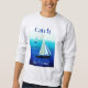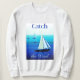 Sweatshirt in Poster art of yachts at sea, with the phrase "catch the wind", on a cobalt and cerulean blue ocean background