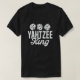 My 11 yo wore adult XL (5’7” 165#). The 8yo is small framed. She wore adult small and tied it in the back. Grandma wore adult large with long sleeve shirt underneath. Tall girl adult medium. Dark haired male adult large. Good quality dark Heather gray, Gildan brand shirt. -it was next up from basic choice and cost about $20 per shirt. Not too thick or thin. Washed and dried well, no major shrinkage. Not see-through. Can wear a bra under it fine. Screen print is just as shown and well done, front and back.