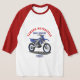I bought the Men's Basic 3/4 Sleeve Raglan T-Shirt, White/Navy. It arrived on time for a gift and is of a great quality and fits perfectly! So cute! Zazzle has done it again! The printing was clear and filled in solidly.