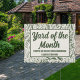 This botanical Yard of the Month club sign features a modern pattern of green foliage forming a border around pretty cursive script. Customize with your neighborhood association HOA name or garden club to complete the award.