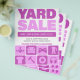 Add your custom details to this eye-catching pink yard sale flyer template featuring popular Yard Sale items in silhouette to make your announcement stand out. It's easy to replace any or all of the text on the template and turn this yard sale flyer into a personal invitation to your event. Just click and type! Creating custom Yard Sale Flyers has never been so easy.
