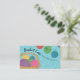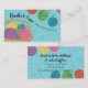 Colorful balls of yarn in a basket with modern patterned background on this business cards for knitting, crochet, and homespun yarn crafts.
