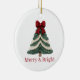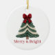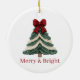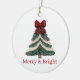 Yarn Faux Embroidery Christmas Tree Merry Bright Ceramic Ornament